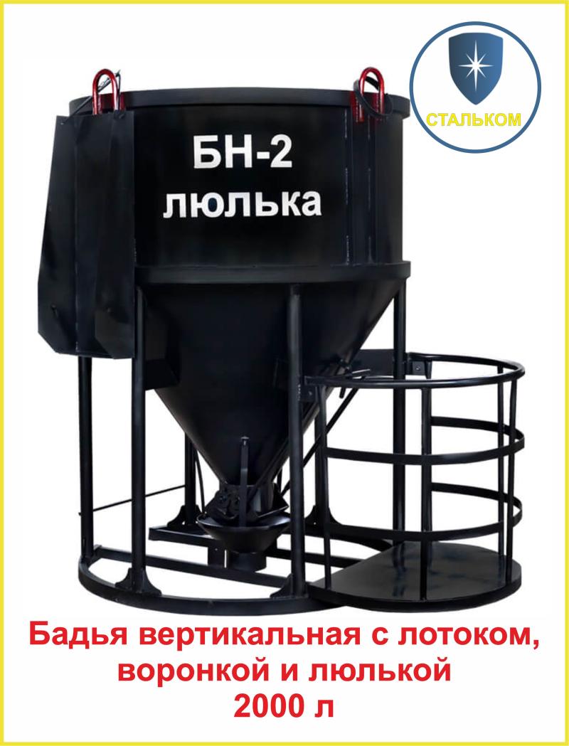 БН-2-3 Бадья вертикальная 2000л с лотоком, воронкой и люлькой