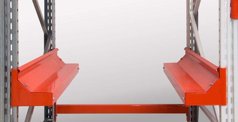 Для операций с грузом погрузчику необходимо заезжать в саму конструкцию стеллажа, подъемная техника постепенно заполняет полки, набивая паллеты грузами. Такие конструкции не нуждаются в проходах между стеллажами, за счет чего достигается довольно высокая компактность складирования товаров.